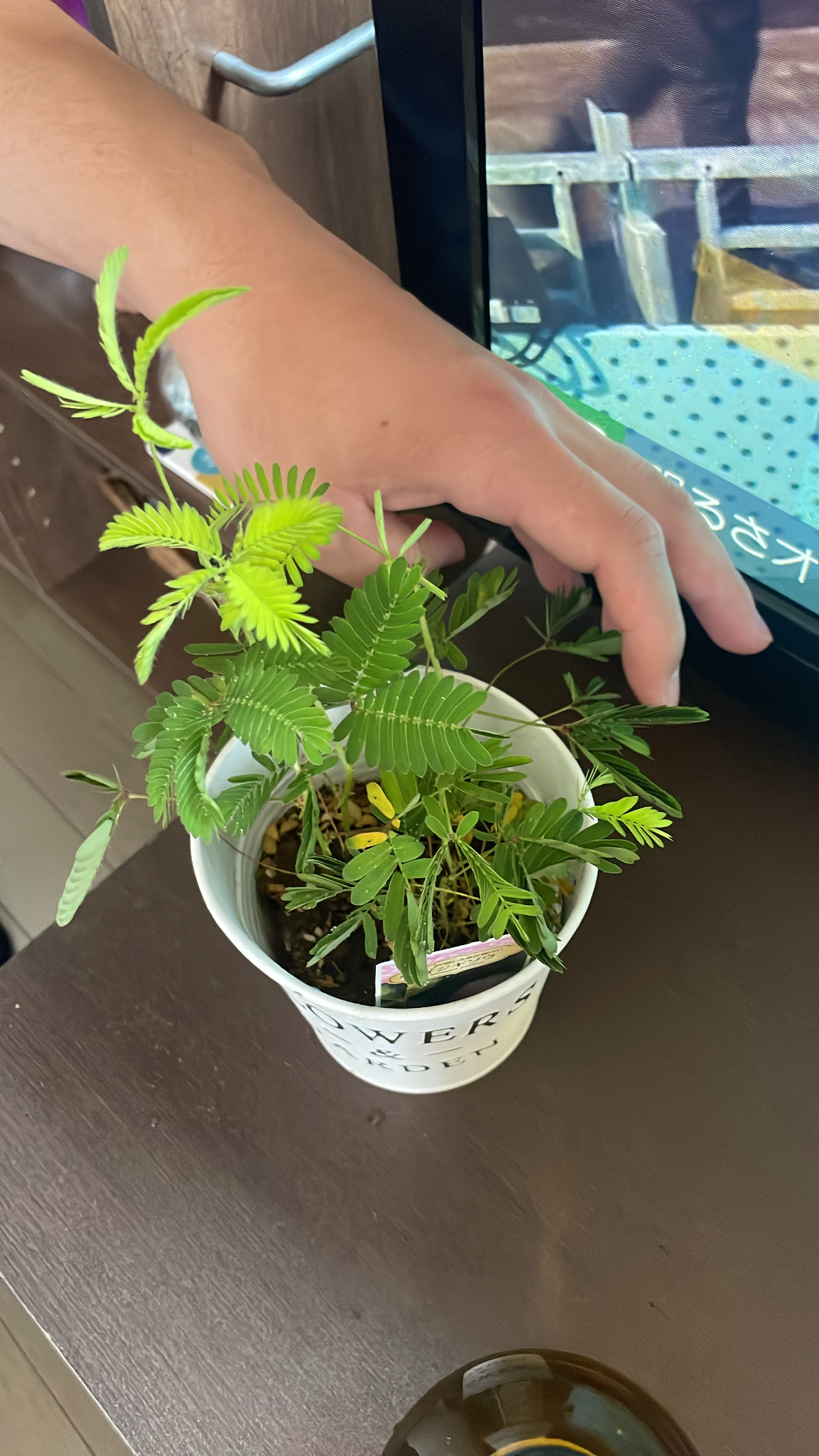 この観葉植物は「オジギソウ」といわれています。。